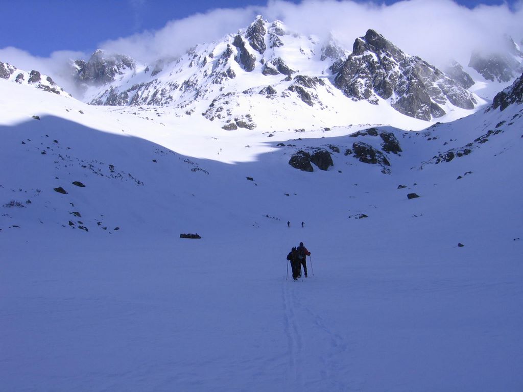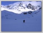 Mozolnie przemierzając łagodnie wznoszące się pola śnieżne, od czasu do czasu spoglądam na oddalone od nas dwie postacie narciarzy, którzy w niezłym tempie kierują się na Żelazne Wrota.
