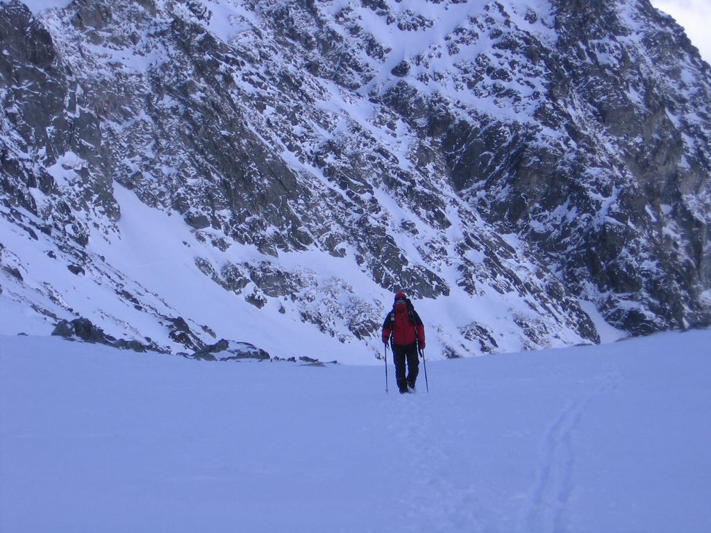 Potężne pole śnieżne, które musimy pokonać pod lewą połać ściany, wyglądają imponująco. Patrzę na nie z rosnącym niepokojem - wszak trzy dni temu spadło dobrze ponad pół metra śniegu. Albo i metr.