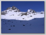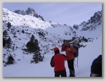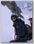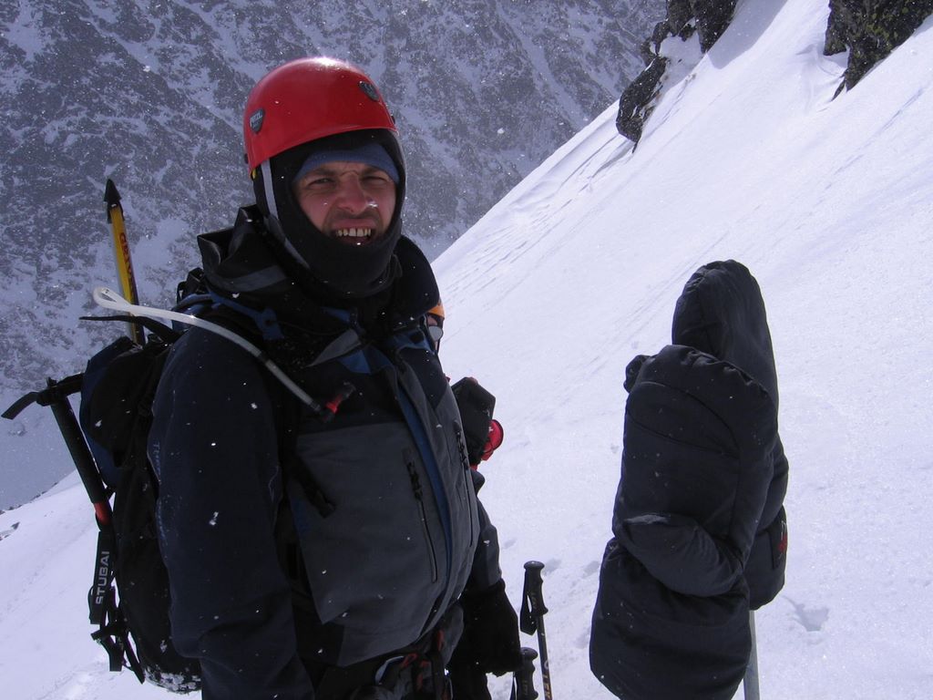 Obok nas uwija się czwórka Czechów. Zrobili inną drogę i trawersują na prawo do żlebu, skąd zejdą w dół.