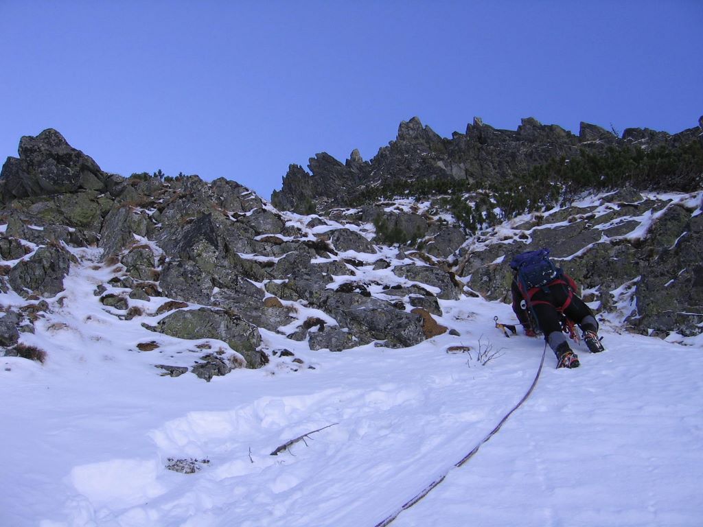 No, wreszcie zaczyna się przedostatni wyciąg. Według słów Młodego przed nami jeszcze tylko ten wyciąg, a potem właściwie pół następnego; reszta to dodreptanie do grani.