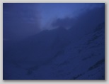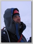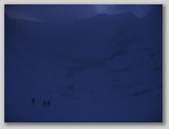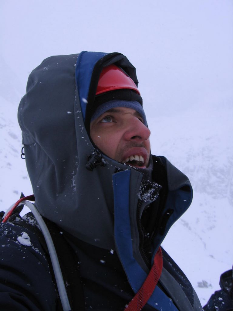 Czas mija. Wśród upiornej pogody pokonujemy kolejne progi, mechanicznie dziabiąc i wbijając raki, trochę podkręcając tempo. Kurczę, napiłbym się czegoś. Na stawanie i grzebanie w plecaku za termosem - nie ma czasu. Mój wierny camelbag już dawno zaniemógł - mimo dość dużego stężenia roztworu napoju wlanego do środka, dojmujące zimno ścięło go na tyle idealnie, że camelbagowa rurka zawiera tylko jednolity lód o lekko żółtawym zabarwieniu.