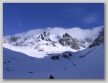Wkładając raki, uprząż, dzieląc szpej i przeciągając linę, spoglądam na pogodę. Nie wygląda to dobrze. Wał gęstych, zbitych chmur znad głównej grani przesuwa się w naszą stronę, gnany coraz mocniejszym porywem północnego wiatru. A na południu też pojawiają się jakieś nieciekawe, rosnące do góry chmury. Pogoda najwyraźniej się łamie. A poza tym, kurczę, zimno !
